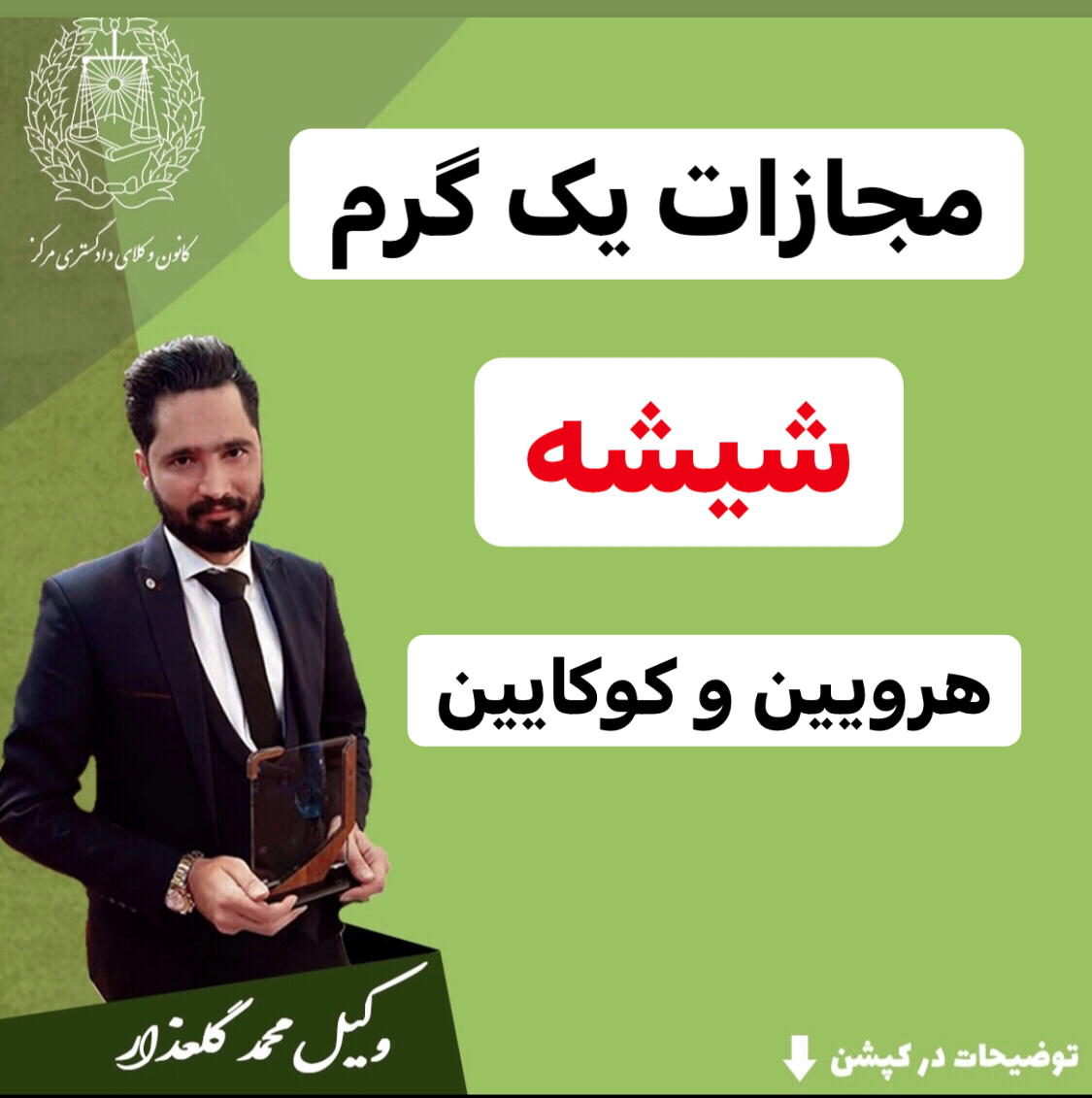 وکیل خیلی عالی جرم حمل و نگهداری شیشه کیست؟آقای محمد گلعذار
