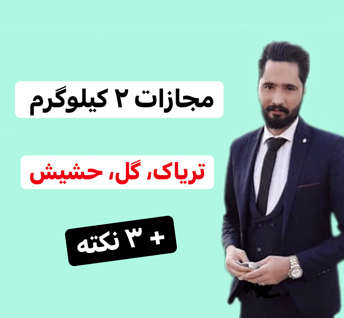 اولا: مجازات و جرم تریاک، نگهداری، خرید، مخفی یا حمل دو ۲ کیلو تریاک، گل، حشیش، شیره، سوخته، گراس به این شرح است که: ۴۰ تا ۷۴ ضربه شلاق و ۸۰ تا ۳۰۰ میلیون ریال جزای نقدی و ۲ تا ۵ سال حبس می باشد.